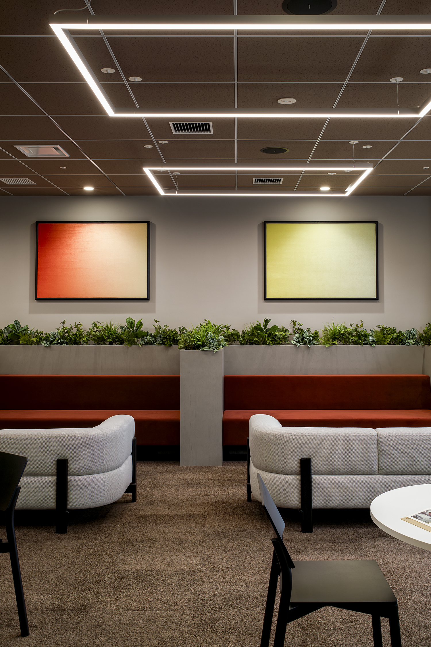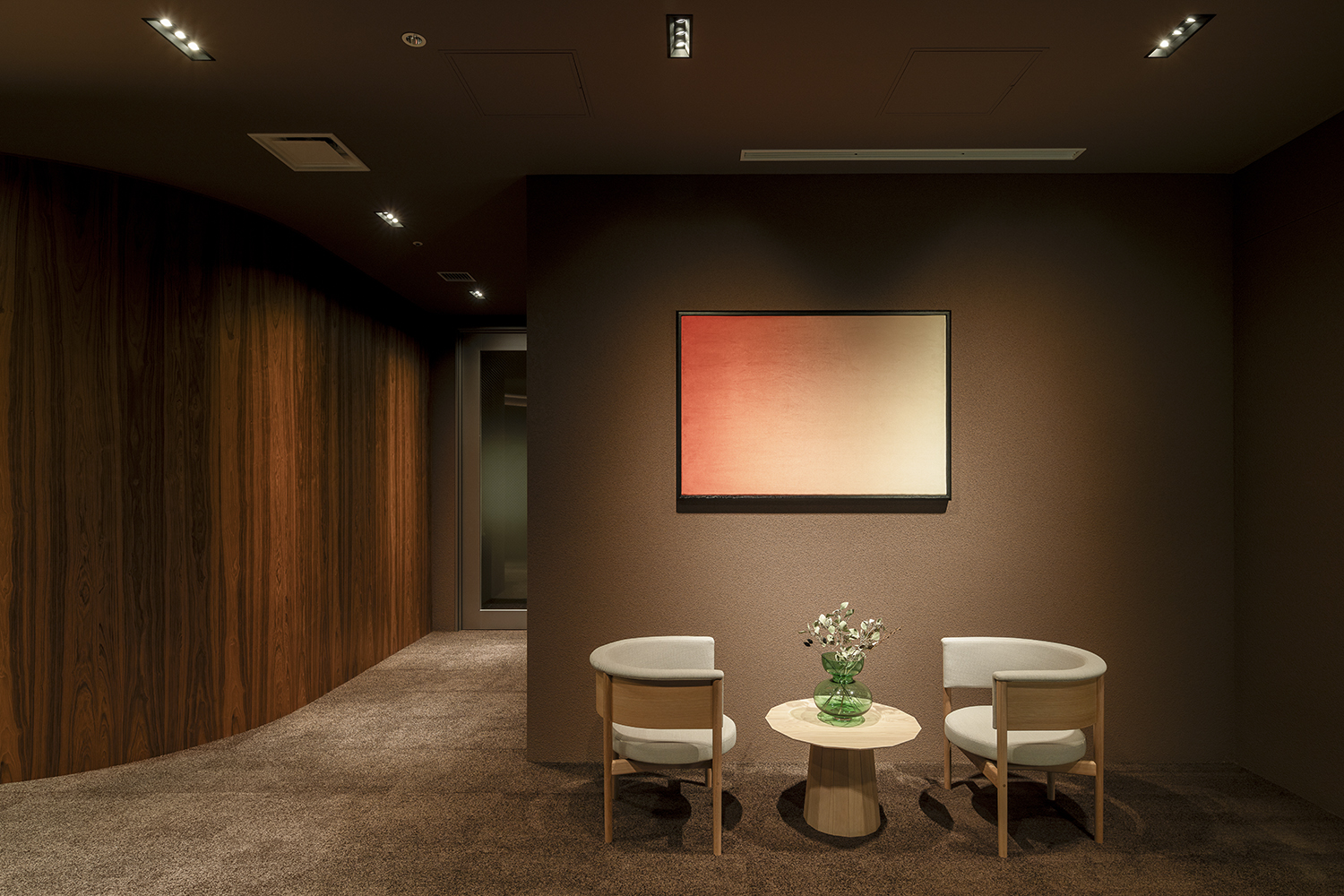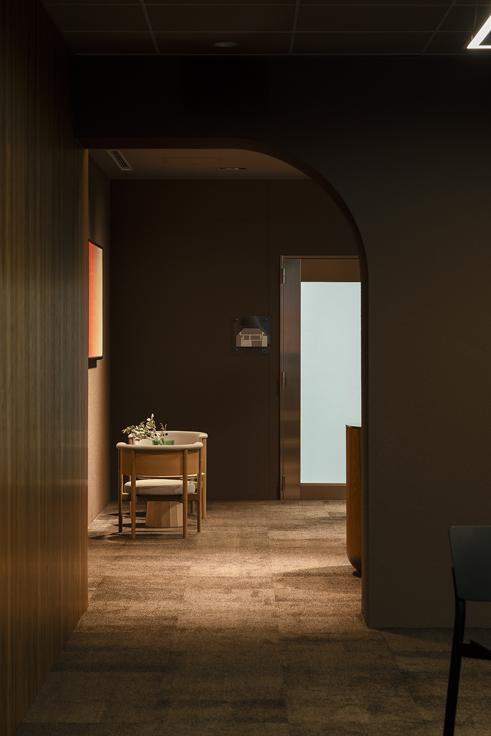 The furniture layout focuses on facilitating conversation. Comfortable face-to-face seating ensures an appropriate sense of distance while encouraging natural dialogue and interaction. The entrance—serving as the “face” of the lounge—was designed with a refined expression to offer visitors a sense of trust and reassurance.